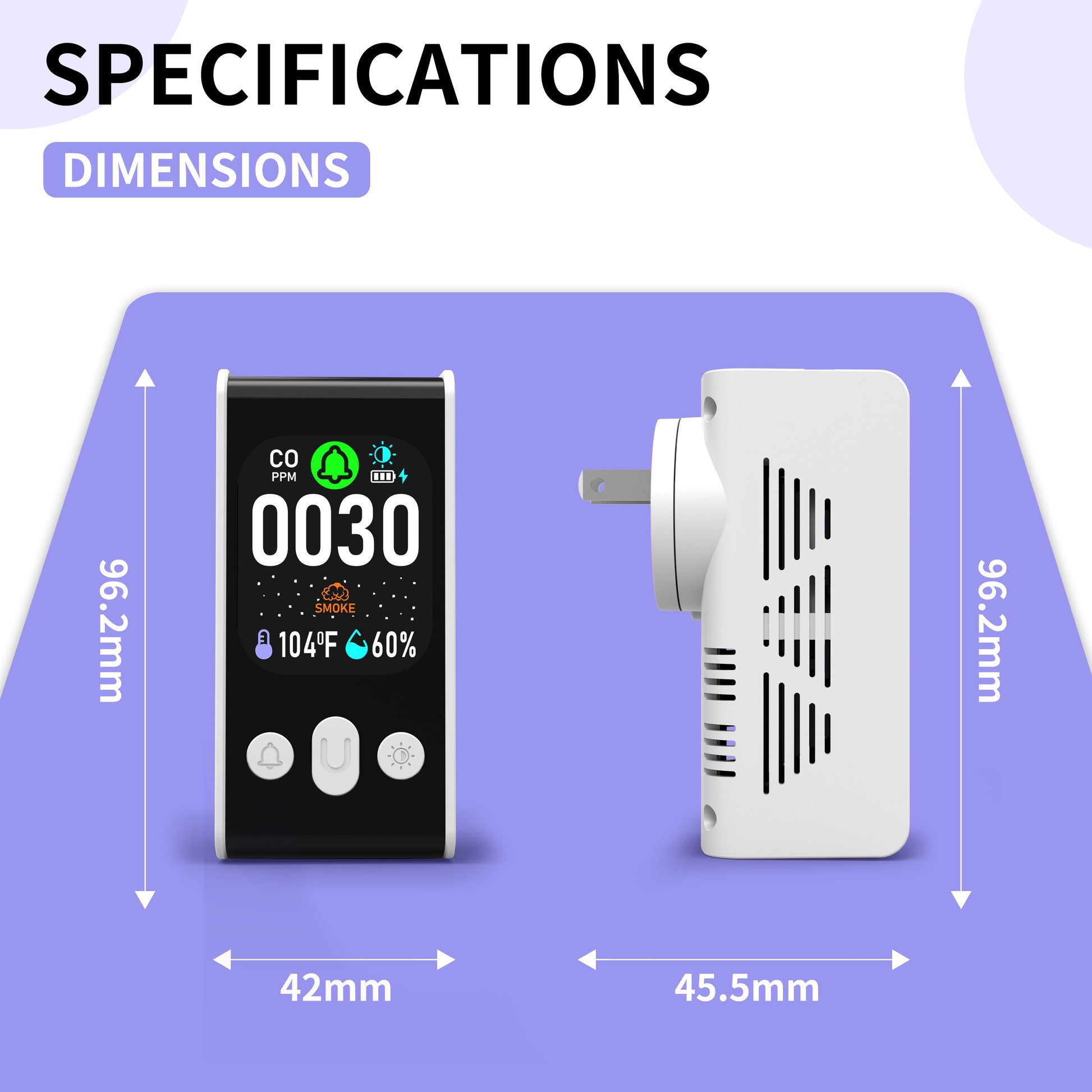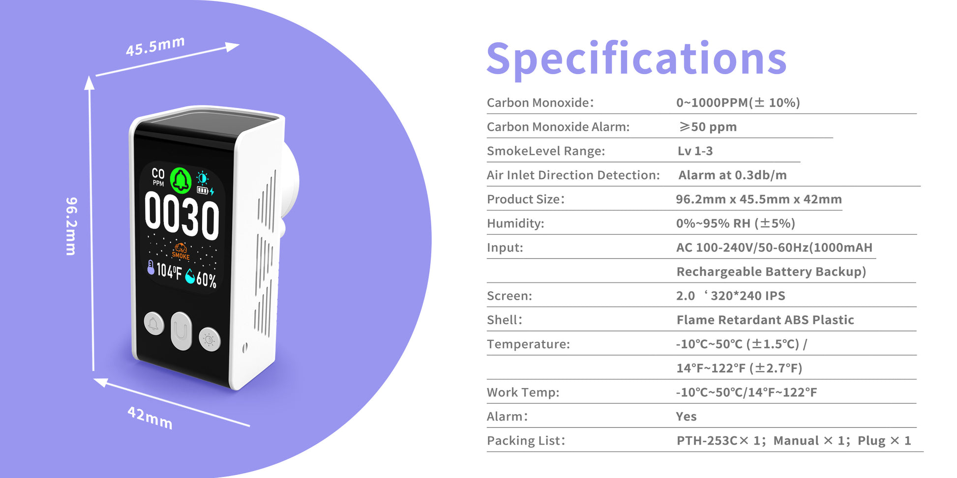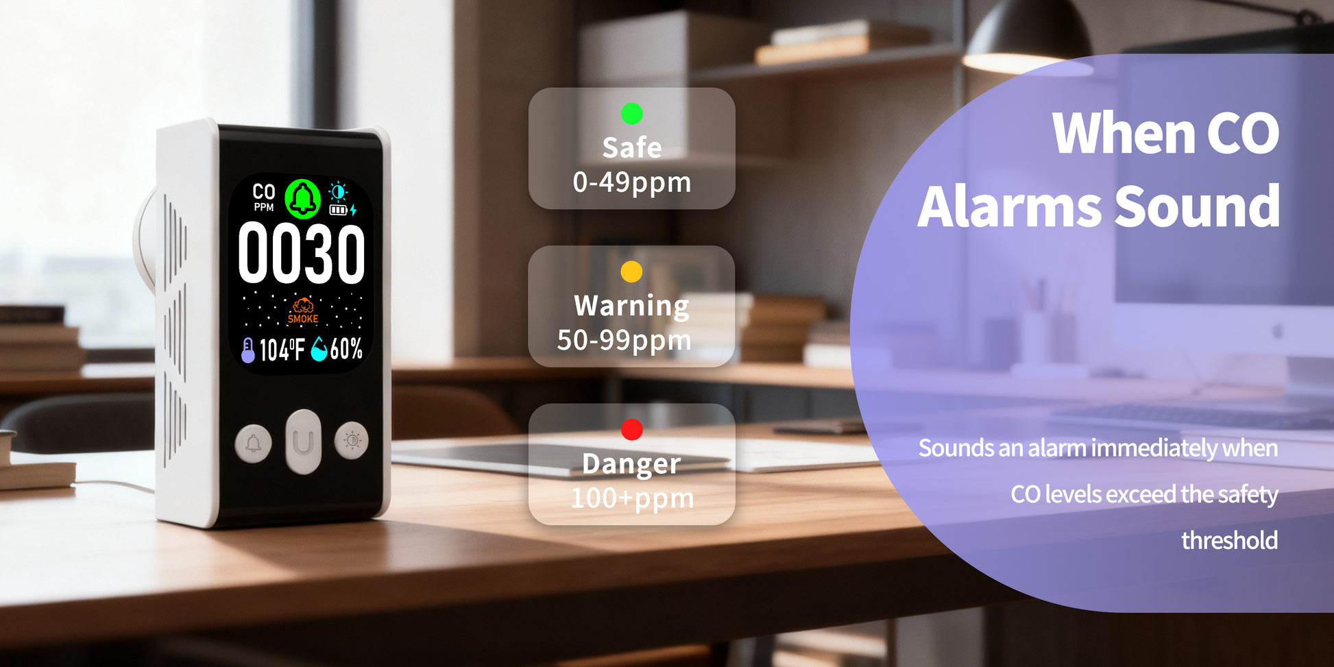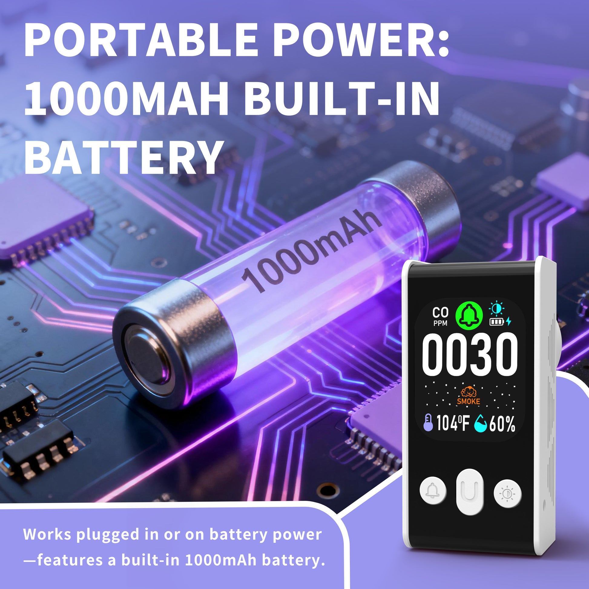 Carbon Monoxide detector, Smoke Monitoring, Temperature and Humidity Monitoring , Dual Mode Power Design, Flame Retardant Protection against Fire.