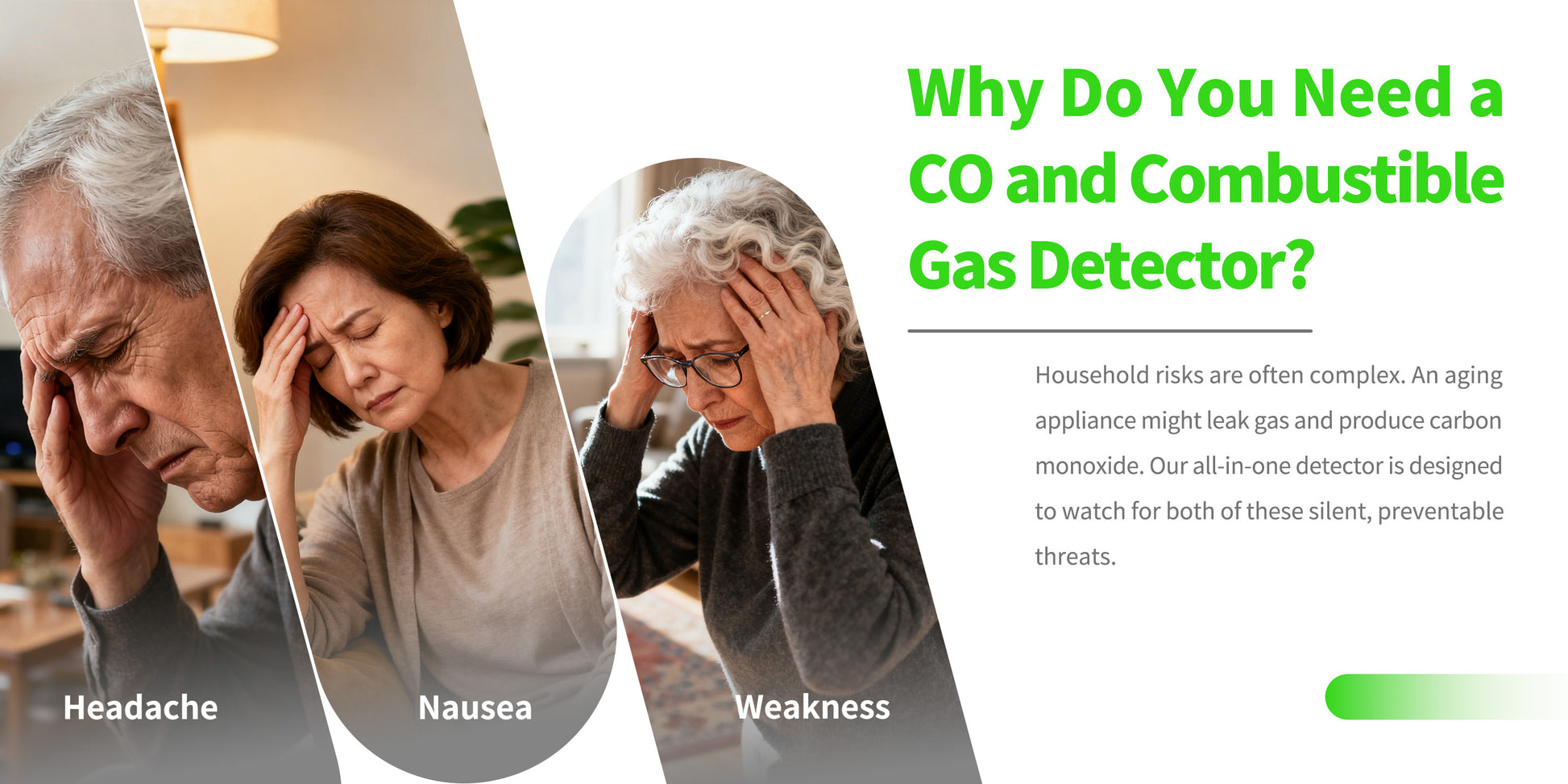 Never miss a threat with our 3-in-1 professional-grade sensors. The Guardian Pro Trio simultaneously monitors Carbon Monoxide (CO), Combustible Gas (like methane), and Smoke in real-time, providing the most comprehensive early warning system for your home against invisible and visible dangers.
