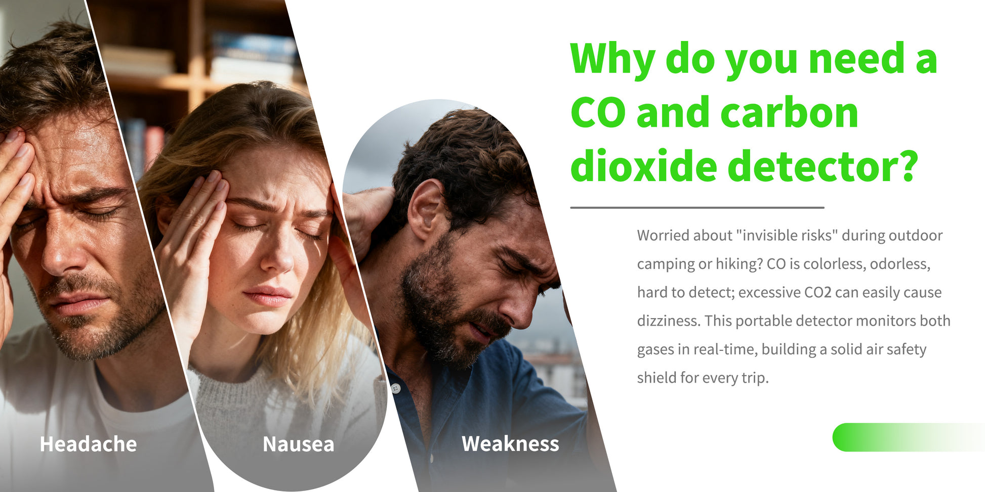• Enhanced Functionality & Versatility: Designed for both indoor and outdoor use, with a working temperature range of -10℃ to 50℃ (14℉ to 122℉). The multifunctional detector is ideal for camping, hiking, home safety, and workplace monitoring.