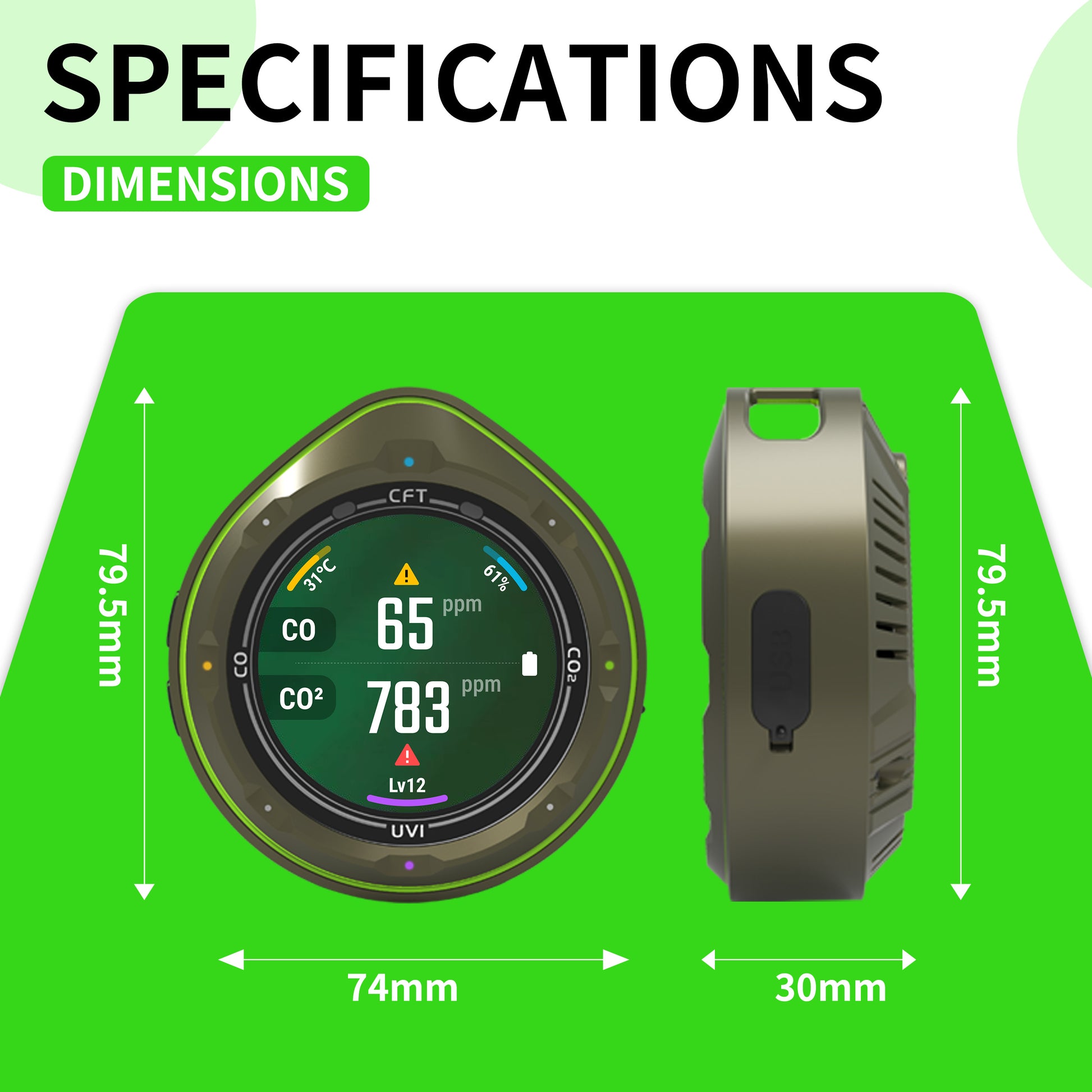 • Comprehensive Environmental Monitoring: Our portable carbon monoxide detector detects multiple critical factors including Carbon Monoxide (CO), Carbon Dioxide (CO2), Temperature, and Humidity. The device also measures UV Radiation, providing a complete overview of your environment for enhanced safety and comfort.