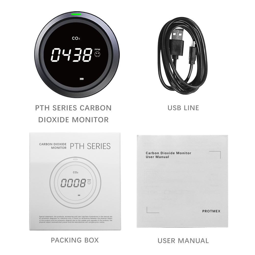 The PTH-4 CO2 detector utilizes advanced Non-dispersive infrared technology to accurately detect CO2 levels from 400 ppm to 5000 ppm. Protect yourself from hypoxic asphyxia caused by excessive carbon dioxide with this versatile and widely applicable product. Ideal for cars, baby rooms, offices, greenhouses, farms, and more.