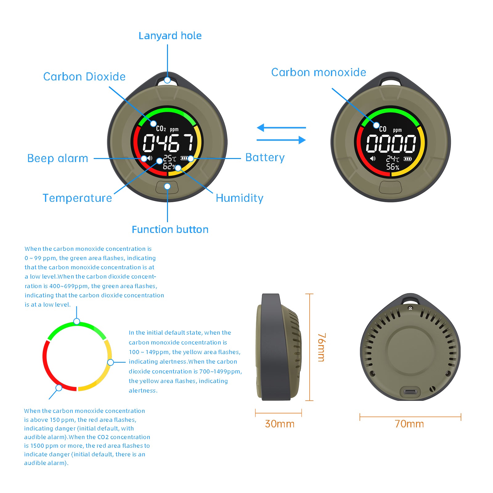这款 10 E 型一氧化碳探测器专为户外爱好者和露营者设计,提供可靠的一氧化碳检测功能。这款便携式设备可实时监测一氧化碳浓度,及早发现帐篷、房车和封闭式露营空间内危险气体的积聚。它配备灵敏的电化学传感器,一旦检测到有害浓度,便会发出警报,在过夜旅行中保护您和您的同伴。该设备小巧轻便,使用标准电池即可高效运行,无需外部电源。对于任何在通风可能不佳的封闭式露营环境中长时间停留的人来说,这都是必不可少的安全装备。