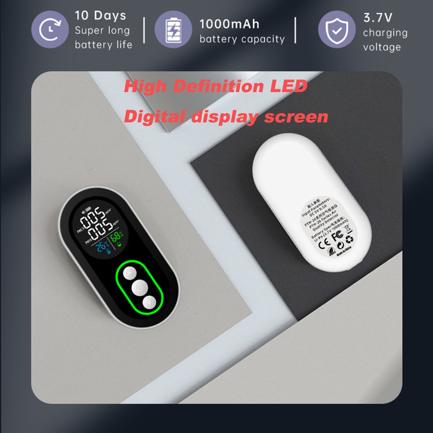 - All-in-One Comfort & Air Quality Check – One device monitors four key indicators (PM2.5, PM10, Temp, Humidity) to give you a complete picture of your indoor environment. Perfect for checking your air purifier's efficiency or deciding when to ventilate.