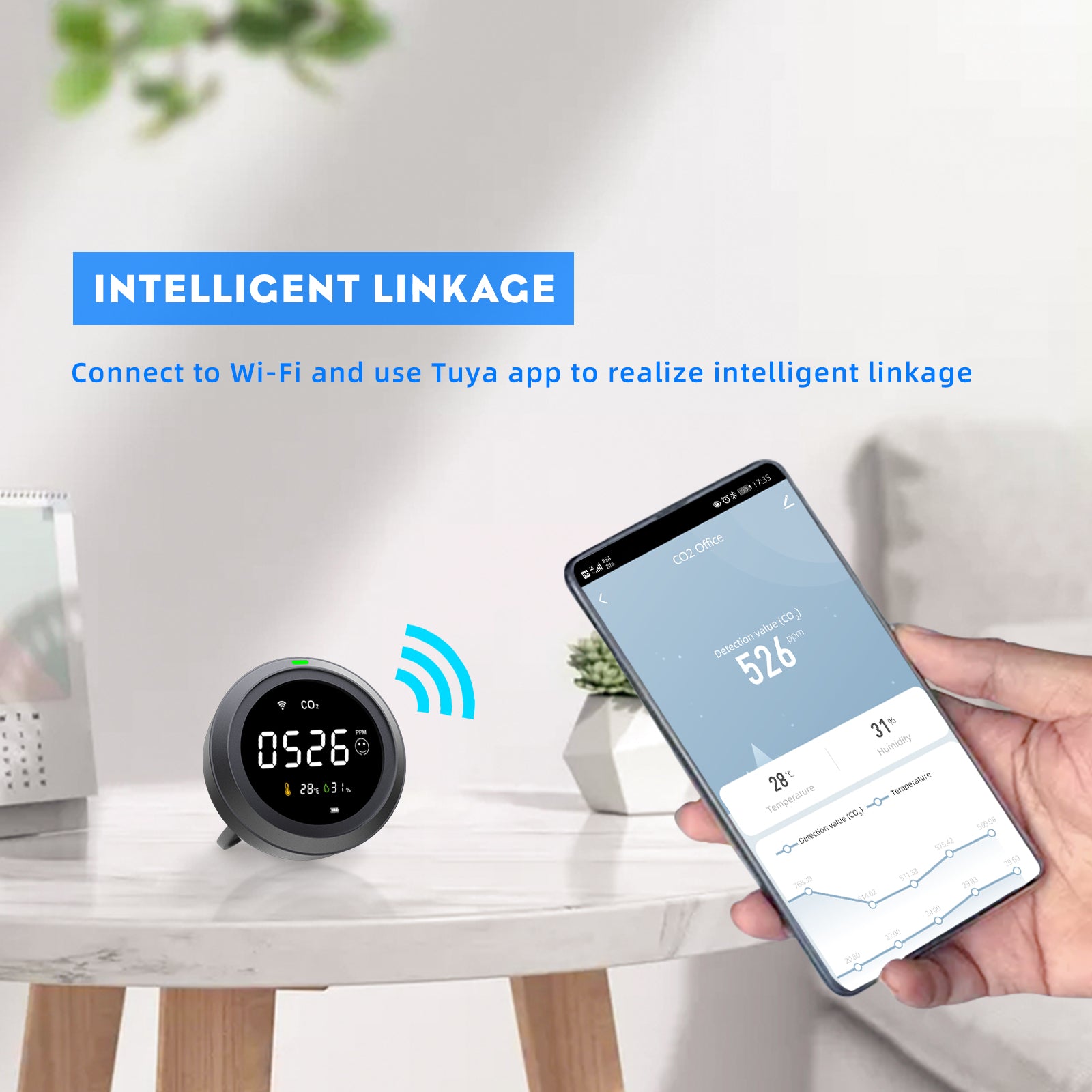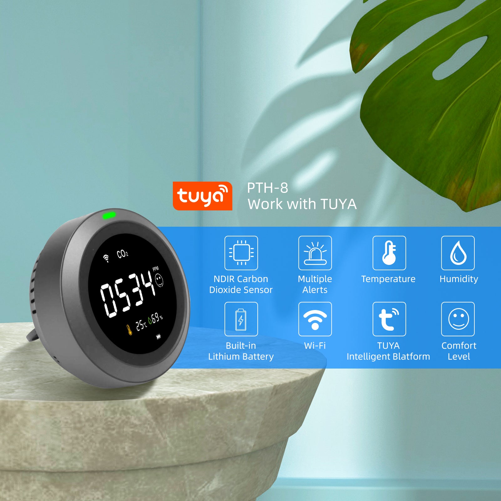 使用 PTH-8 Wi-Fi 智能二氧化碳检测仪监测家中二氧化碳浓度。通过 Wi-Fi 连接,即可轻松使用手机查看和控制二氧化碳浓度。随时掌握家中二氧化碳浓度,保障家人健康安全。